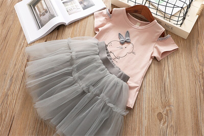 Girls Dress 2019 Brand Kids Clothes White Cartoon Cute Bunny Set Short Sleeve T-Shirt+Veil Dress 2Pcs Girls Easter Dress 3 8Y