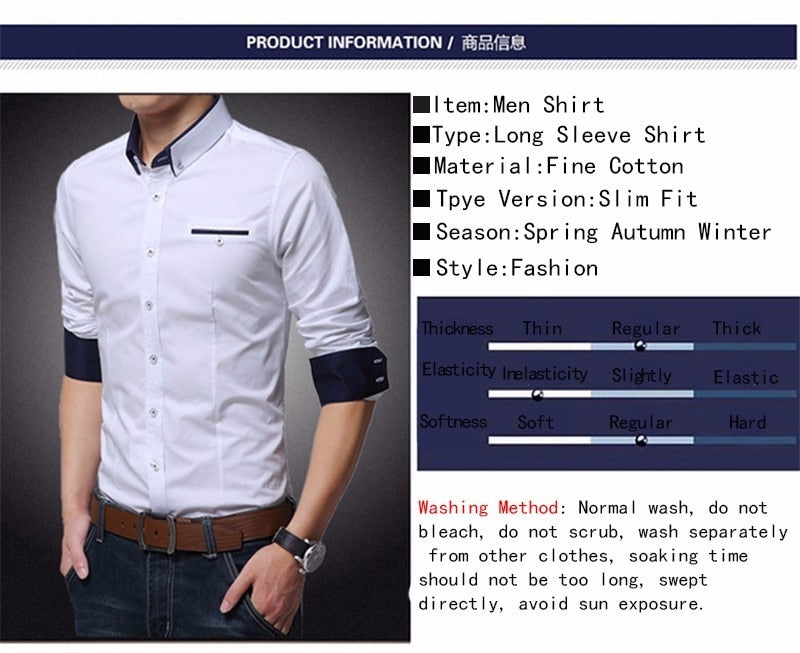 Men Cotton Casual Business Shirt Long Sleeve Solid Color