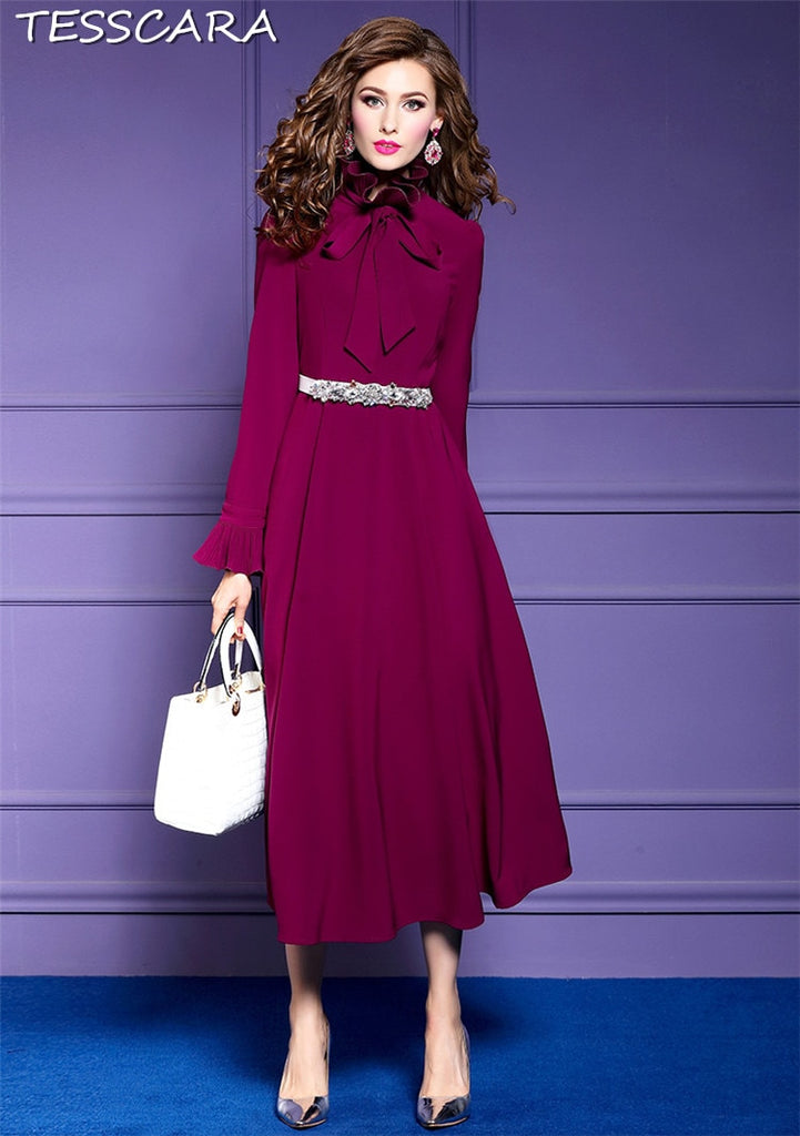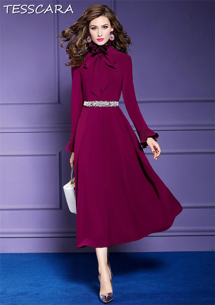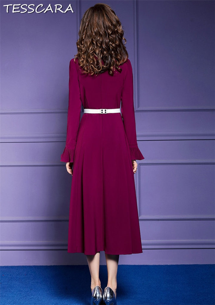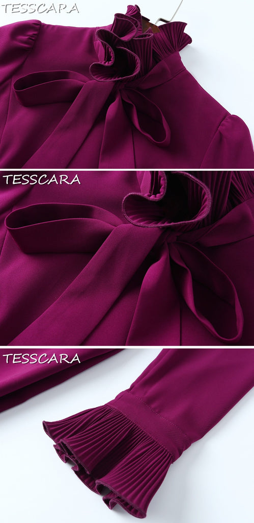 TESSCARA Women Spring & Autumn Elegant Vintage Dress Festa Female High Quality Designer Office Party Vestidos Ruffles Robe Femme