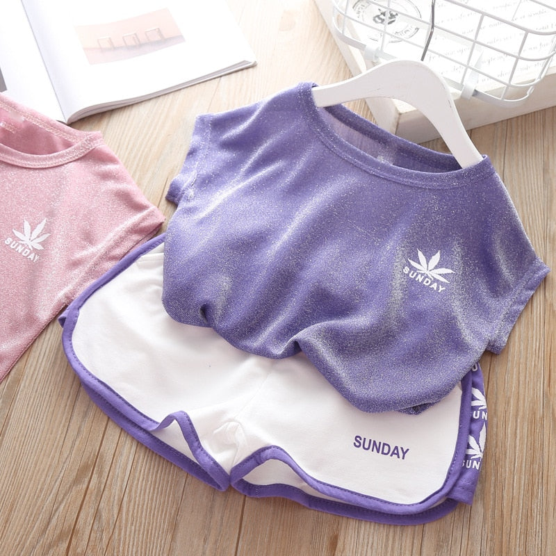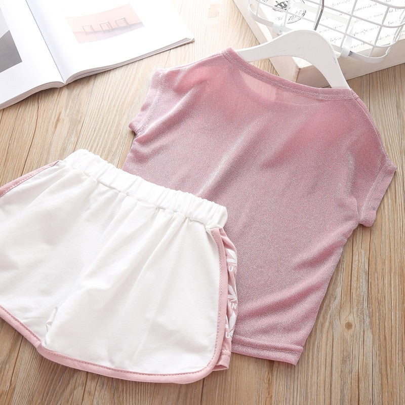 2019 Kids Girl Summer Clothing Sets Short Sleeve Tee Shirts and White Shorts Children Sport Clothes Set New Brand Tracksuit