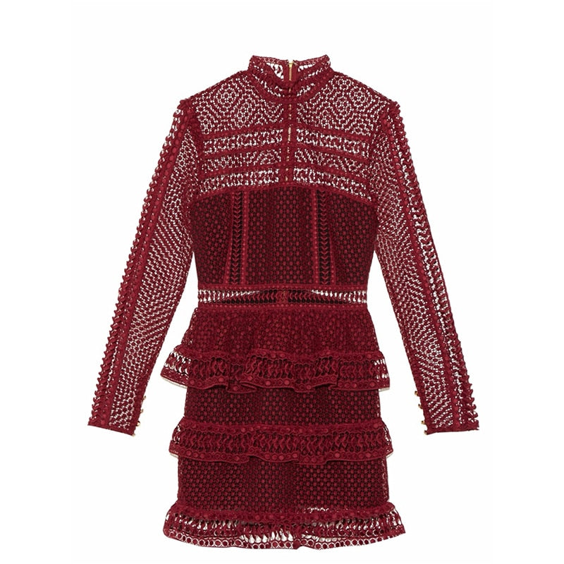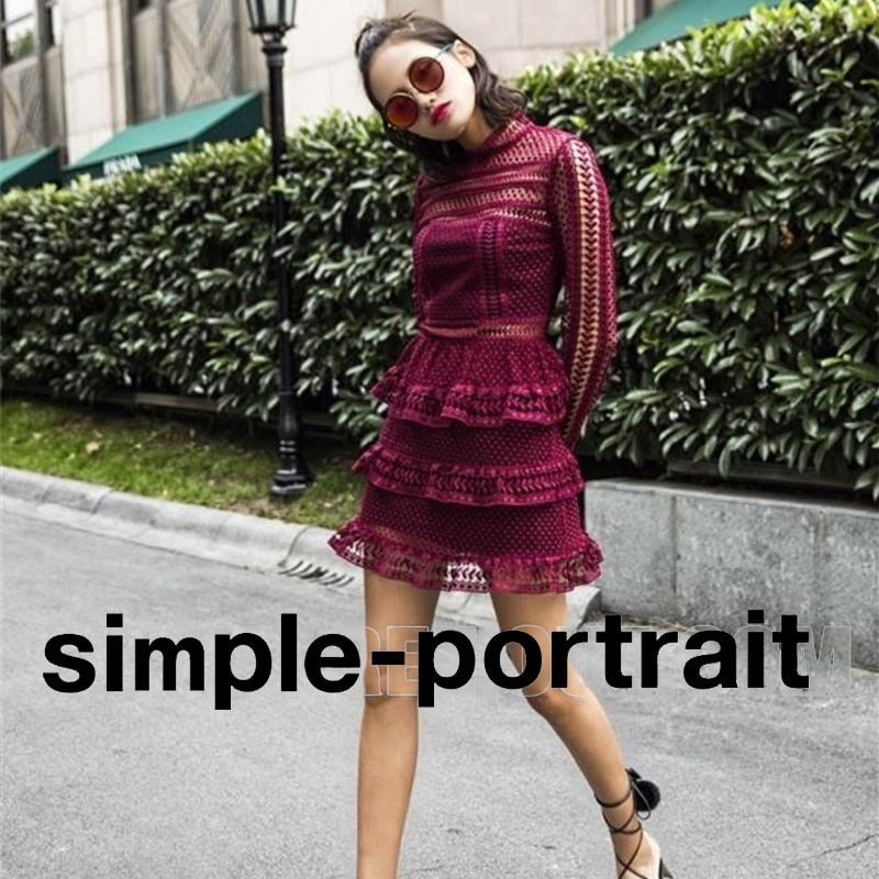 High-end Custom Similar self portrait Dress 2019 Spring Summer Runway Dress Women's Luxury Brand Long Sleeve Lace Ruffles Dress