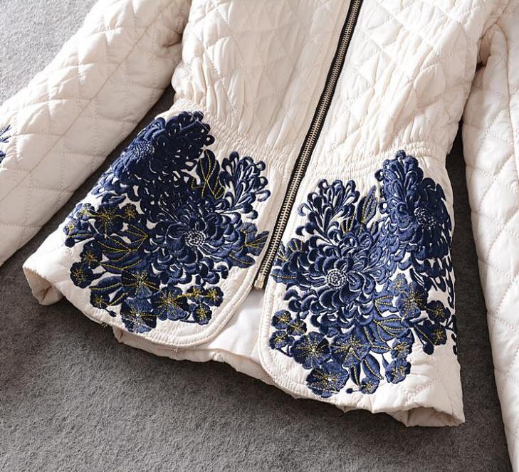 HIGH QUALITY New 2016 Fashion Winter Coat  Women's Long Sleeve Stunning Embroidery Zipper Down Jacket Parka Size M-3XL