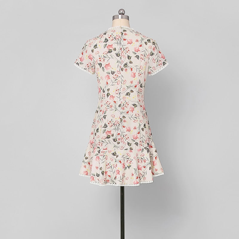 Sweet Girls Fashion Women Dresses Sexy Short Sleeve Night Club Party Floral Dresses O Neck Short Casual Mini Chic Dresses Z1170