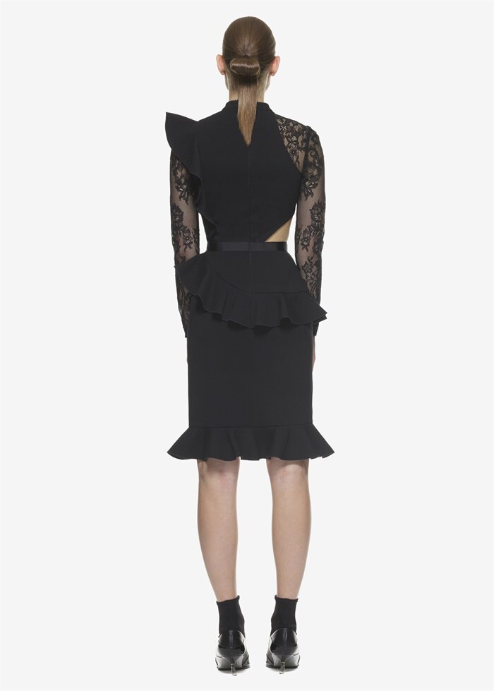 Self Portrait Summer Runway Ruffles Irregular Lace Patched Dress Women Vintage Long Sleeve Package Hip Black Bodycon Club Dress