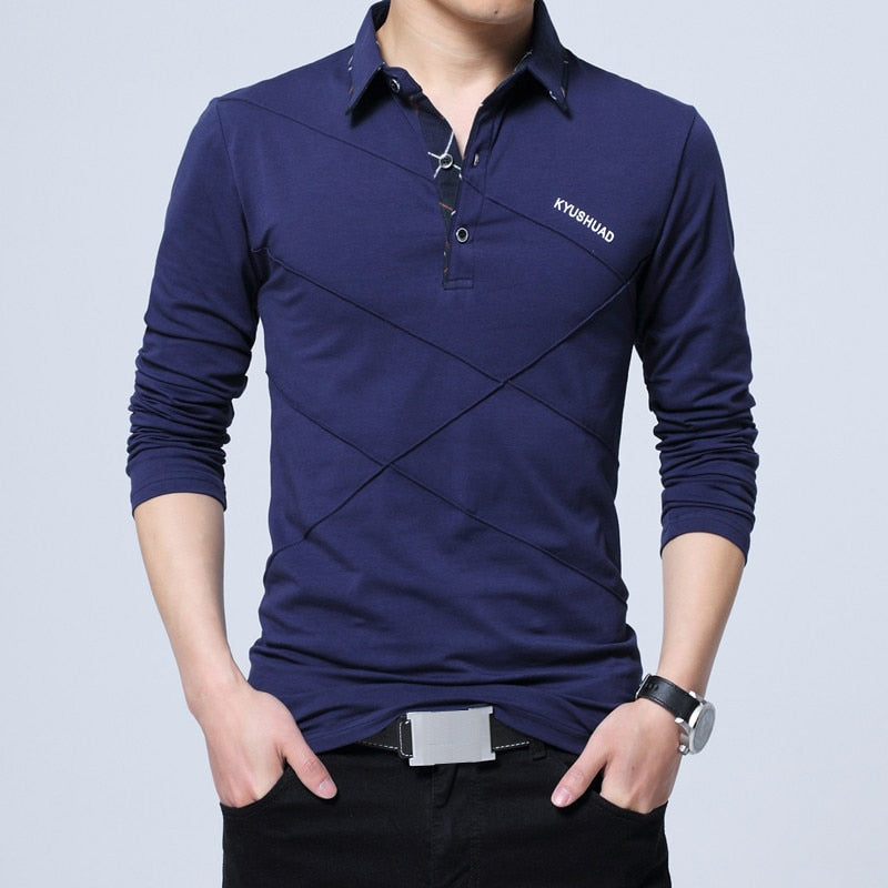 TFETTERS Brand T Shirt Men Long T-shirt Turn-down Stripe Designer T-shirt Slim Fit Loose Casual Cotton T Shirt Male Plus Size