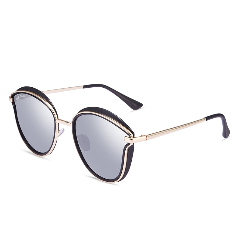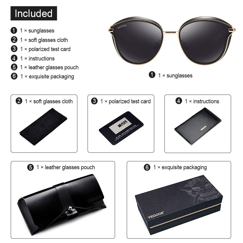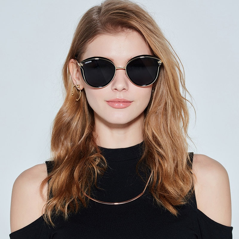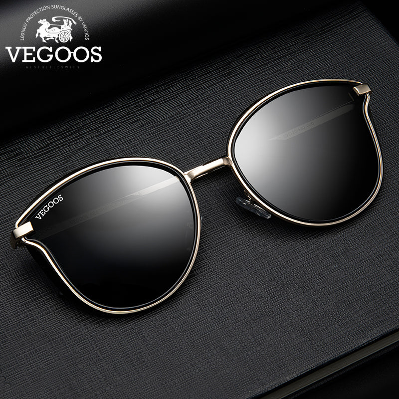 VEGOOS Polarized Women Round Sunglasses PC Frame Colorful Mirrored Lense Fashion Retro Cat Eye Polaroid Sun Glasses #6115